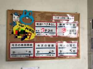 茨城乳配の各営業所には、物流品質向上のための掲示板が