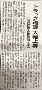 昨日の新聞に、10連休を目前にしてトラック運賃が大幅に上昇して