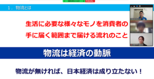 ワーク前に行なっている物流についての講義をしっかりと理解して