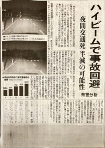 先日の新聞にハイビーム活用が夜間の死亡事故を半減させる