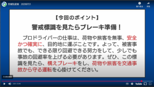 今週の事故防止研修では、警戒標識の重要性と構えブレーキの