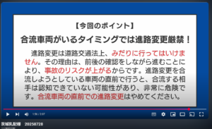 動画では、高速道路やバイパスなどでよく見られる“合流地点”における