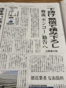 先日、大手物流企業センコーが下請けの運送会社に無償で