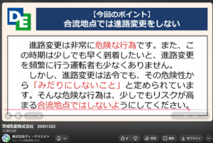 今回の事故防止研修では、合流地点での進路変更をテーマに、