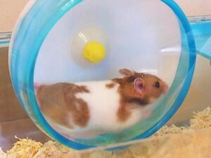 ケージの中で、ものすごい勢いで回し車を走り続けている、あの姿。