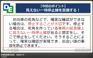 「死角を作っている車両の延長線上に、見えない一時停止線があると