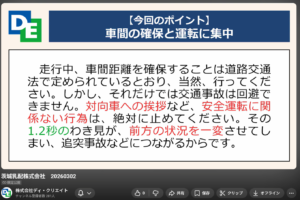 動画では、実際のヒヤリハット事例を用いて、