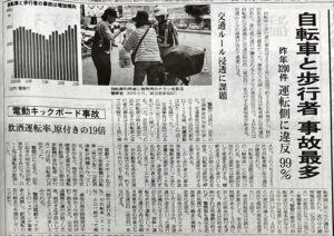 先月のある日の朝刊に、自転車と歩行者が事故最多で、