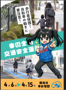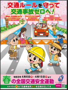 4月6日から4月15日まで、春の全国交通安全運動が実施されます。